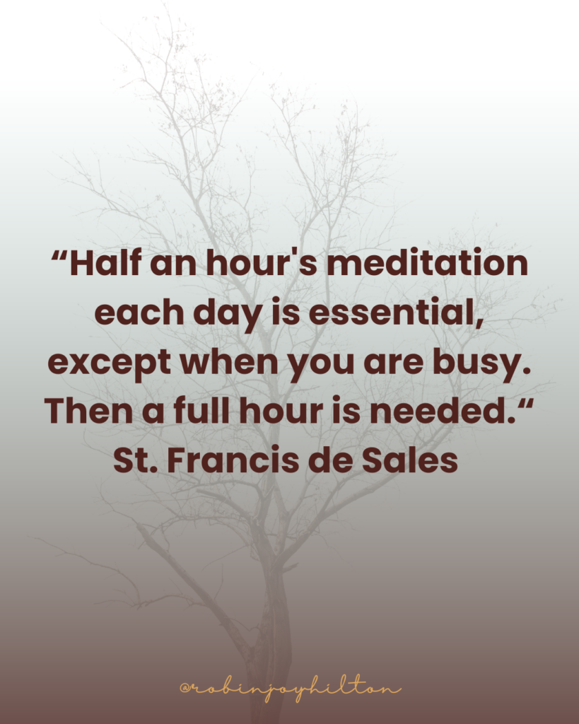 11. “Half an hour's meditation each day is essential, except when you are busy. Then a full hour is needed.“ - St. Francis de Sales