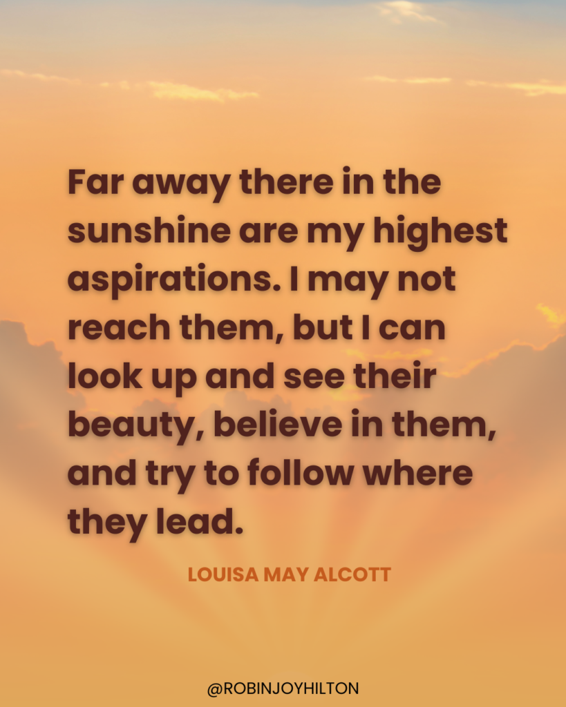 14. “Far away there in the sunshine are my highest aspirations. I may not reach them, but I can look up and see their beauty, believe in them, and try to follow where they lead.” - Louisa May Alcott
